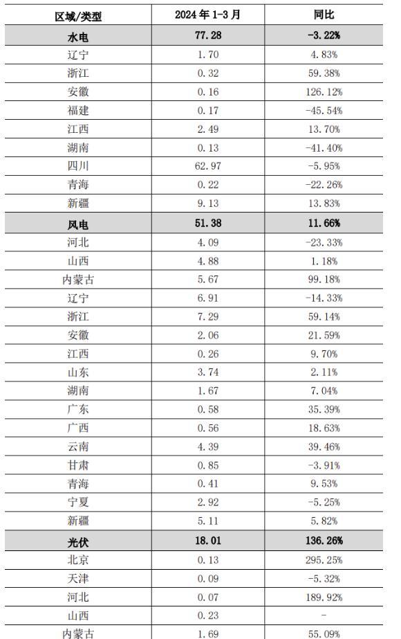 国电电力披露全国各省2024年一季度光伏发电量情况!