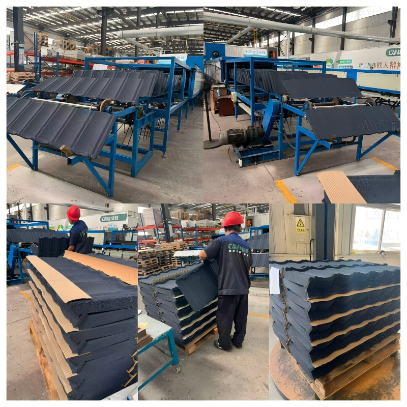 没有过多的口号,只有清晰的目标和明确的责任。哪个订单急,哪个工艺要特别注意,大家各就各位,全自动的辊压成型机有条不紊地将优质的镀铝锌钢板压制成一块块棱角分明的瓦片基材。